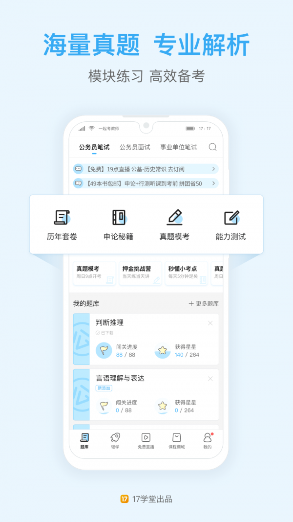 4.在线模考:提供全国及地方公考模考试卷,仿真模拟真实考试情境,帮助考生锻炼临场发挥能力。