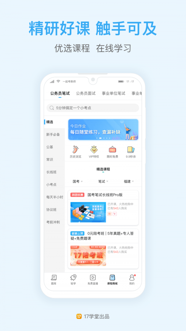 2.名师课程:与多名资深公考讲师合作,提供高质量的精讲视频课程,解决学员在关键知识点上的疑惑,在线学习更加灵活高效。
