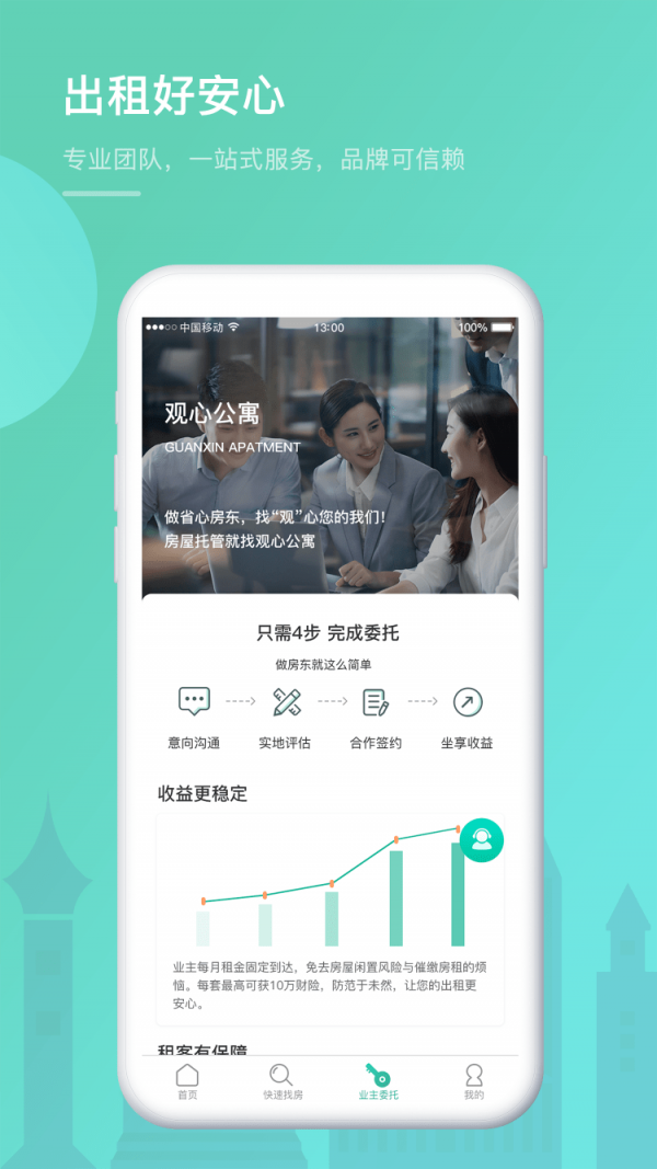 2.高效的运营模式:app的自动化管理方式大大降低了房东和租客的沟通成本,提高了全过程的管理效率。