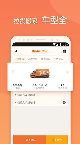 1.便捷的预约服务:用户可以通过手机app随时随地预约货运服务,支持立即叫车和预约叫车两种模式,满足不同时间的物流需求。