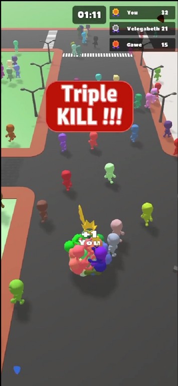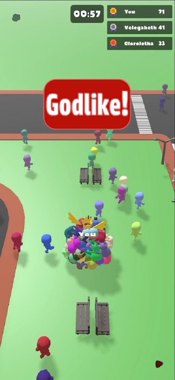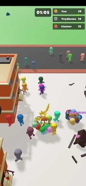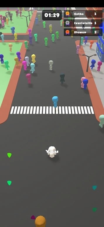 1.在人群球中,玩家将从一个简单的小球开始,通过触屏操控小球的移动方向,将地图散落的其他颜色的小人吸收,逐渐扩大自己的队伍规模。游戏的主要目标是在限定时间内聚集成最大的人群,并与对手展开对抗。每一个关卡都设计有不同的地图布局和难度,玩家需要灵活运用策略来获取先机。
