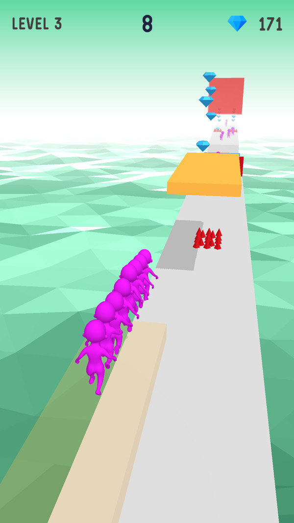 2.游戏的操作十分简便,玩家只需通过手指滑动屏幕即可控制角色的移动,通过不断吸纳散落于地面的人群角色,壮大自己的队伍。游戏还提供各种不同主题的关卡场景,有的考验反应速度,有的则更加注重策略规划,每一局游戏都能带来新的惊喜和挑战。