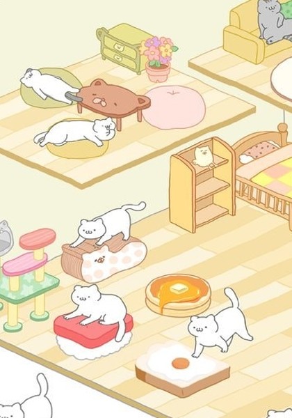 4.定制化房间装饰:玩家可以解锁多种家具和装饰物,为猫咪打造一个独一无二的小天地,提升居住环境的也能增加游戏的趣味性。
