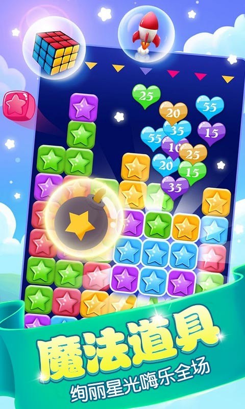 3.精美界面,视觉享受:五彩缤纷的星星搭配悦耳的音效,为玩家打造了一个视觉与听觉兼具的休闲环境,让人在压力之余找到放松的乐趣。