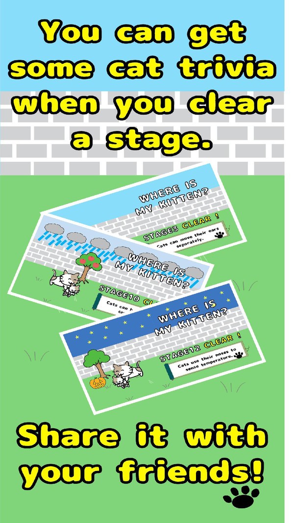 2.从前,有一只可爱的猫咪因为追逐蝴蝶而跑出了家门,不知所踪。它的主人非常着急,因此踏上了寻找它的旅程。玩家将成为这位主人的朋友,帮助一起寻找猫咪。在旅途的每个阶段,都会遇到不同的挑战,玩家需要通过解谜来逐步推进故事的发展。