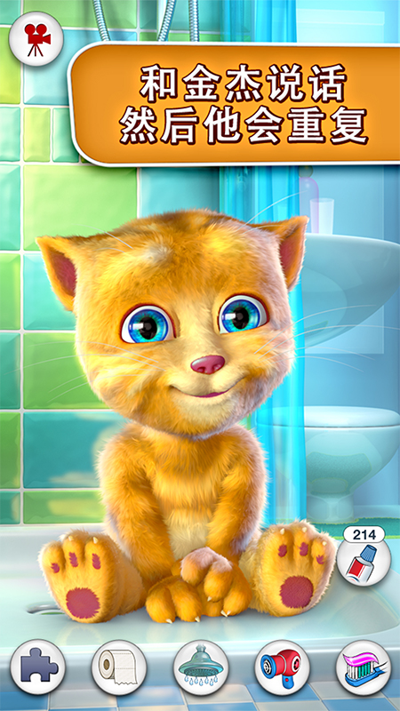 2.金杰猫可以模仿玩家发出的声音,还可以通过不同的表情和动作回应玩家的触摸。金杰猫同时具备超强的互动体验,玩家可以帮助金杰猫刷牙、洗澡、喂食等。这些生活化的互动不但丰富了游戏内容,还让玩家感受到与游戏角色间的亲密关系。