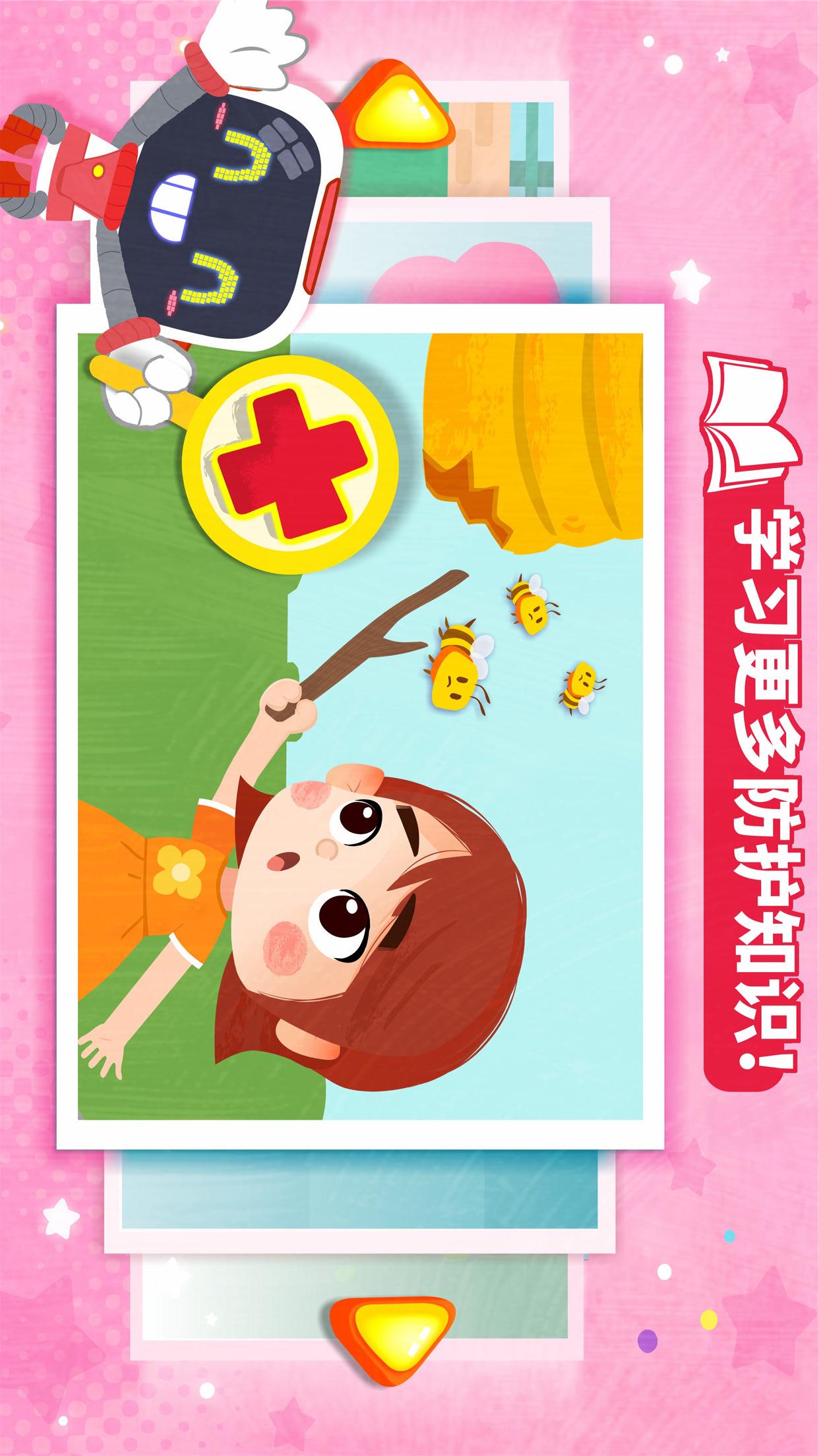 2.游戏采用简洁的卡通画风,动画设计生动有趣,且配有童趣的背景音乐,让孩子们能够沉浸轻松学习。在游戏过程中,孩子们不仅可以学到实用的救护知识,还能通过完成任务获得奖励,培养他们的成就感和自信心。