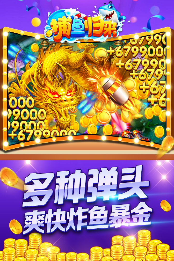 3.策略多变通过使用不同的捕鱼策略和武器,如炸弹、电网、重炮等,玩家可以进行多样化的捕鱼。