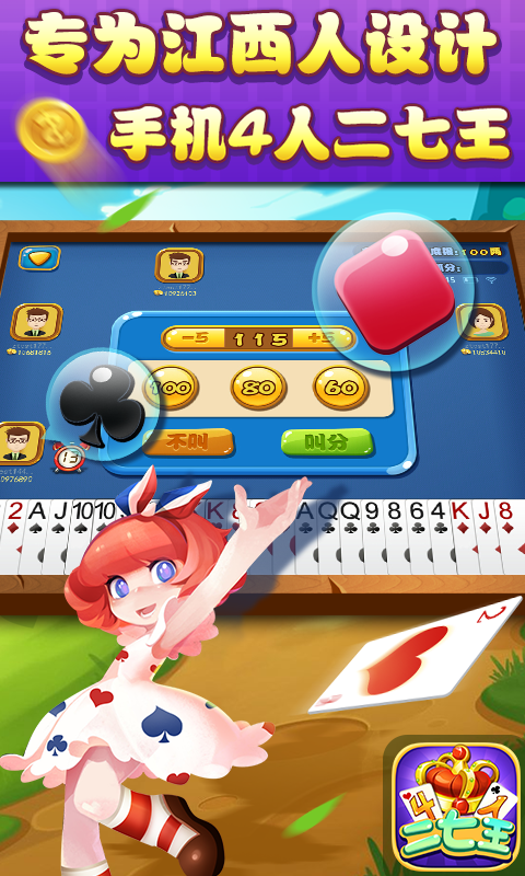 1.三人二七王是一种传统的扑克游戏,其起源可以追溯到民间广为流传的纸牌玩法。游戏使用一副牌去掉大小王后的52张牌,由三名玩家参与。每局牌的颜色和数字都会决定玩家的出牌策略。我们这款二七王正版官方游戏则在这一经典玩法的基础上,加入了诸多创新元素,致力于带给玩家耳目一新的游戏体验。