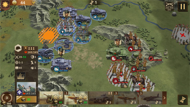 3.深度策略玩法:玩家需要根据战场局势,制定出色的作战计划,利用地形和天气条件,合理配置部队,做好进攻与防守的准备,从而击败敌军。